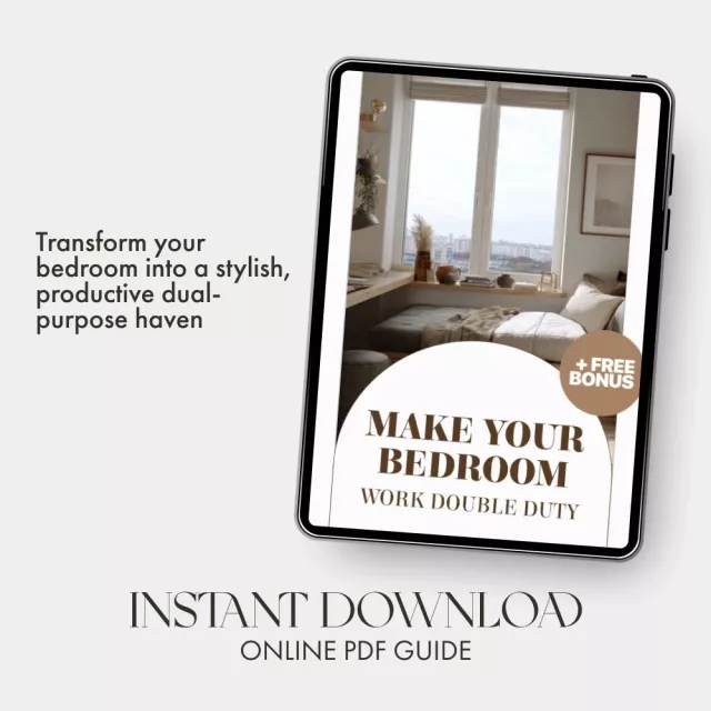 Maximize your home’s potential with Make Your Bedroom Work Double Duty — a practical and beautifully designed guide that helps you turn one room into two. Whether you live in a small apartment, studio, or shared space, this digital download shows you how to make a bedroom function as office and sleeping area—without sacrificing style, comfort, or productivity. Learn how to design, organize, and optimize every inch of your bedroom so it supports both restful nights and focused workdays.