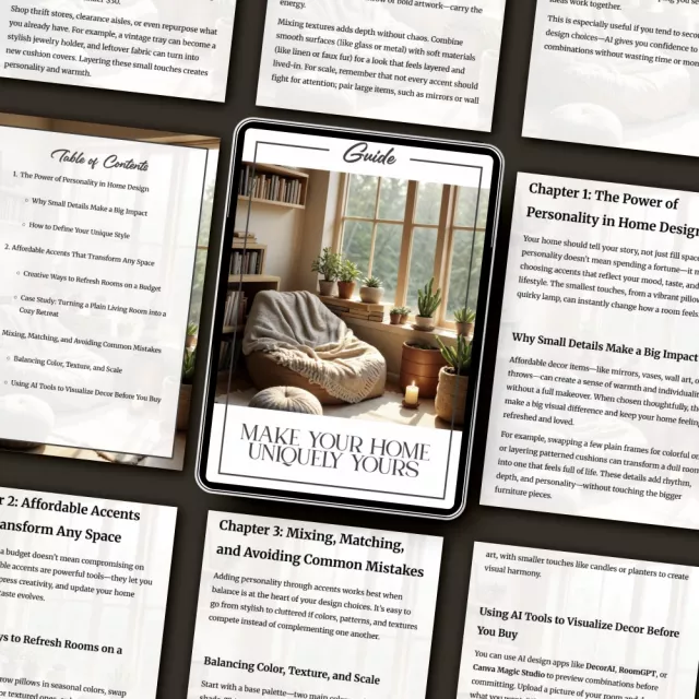 Download your copy of Make Your Home Uniquely Yours now and start transforming your home into a reflection of your style, story, and spirit—one affordable accent at a time.
