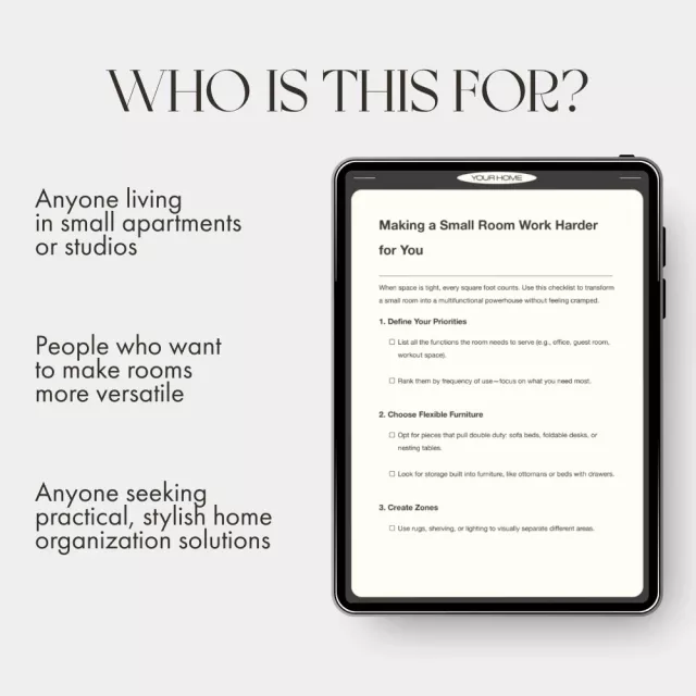 Stop letting a small space limit your lifestyle. With Making a Small Room Work Harder for You, you’ll learn what to do when a small room needs multiple functions and how to design a flexible, stylish, and efficient environment. Download your checklist today and start transforming your space—one smart step at a time.