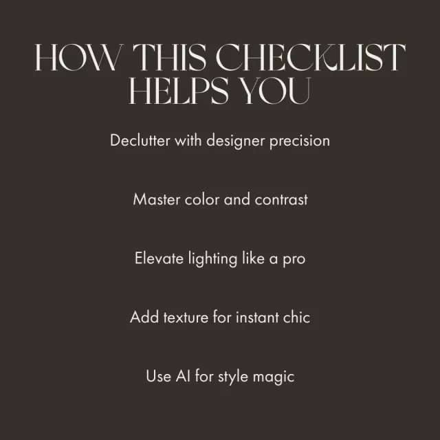 Unlike long eBooks or generic decor guides, this checklist gets straight to the point. Each section is short, visual, and practical—so you can implement changes in minutes. Plus, it uniquely blends traditional interior styling with AI-powered design tools, helping you personalize your look with modern ease.