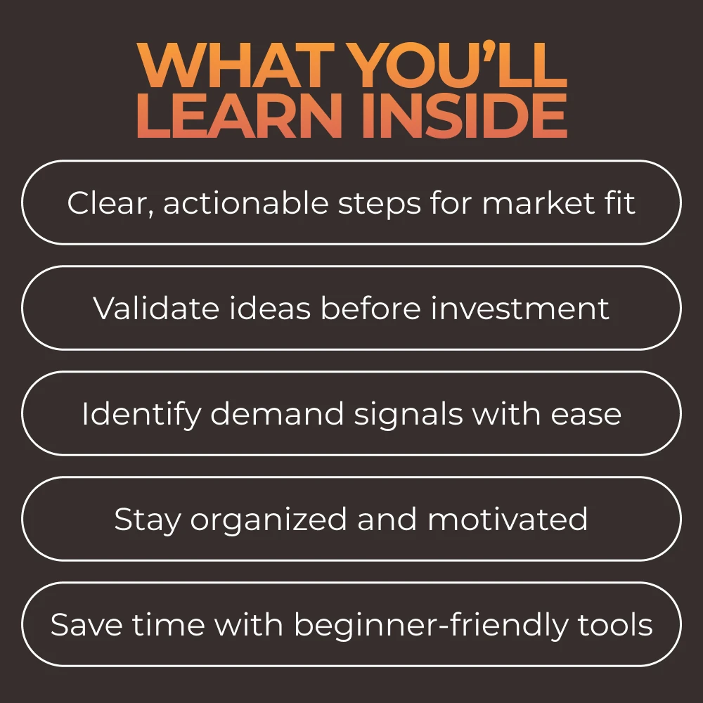 Loved the Proof of Demand Signals Checklist! It gave me concrete evidence that there's a need for my product. So valuable when you're unsure about your business idea.