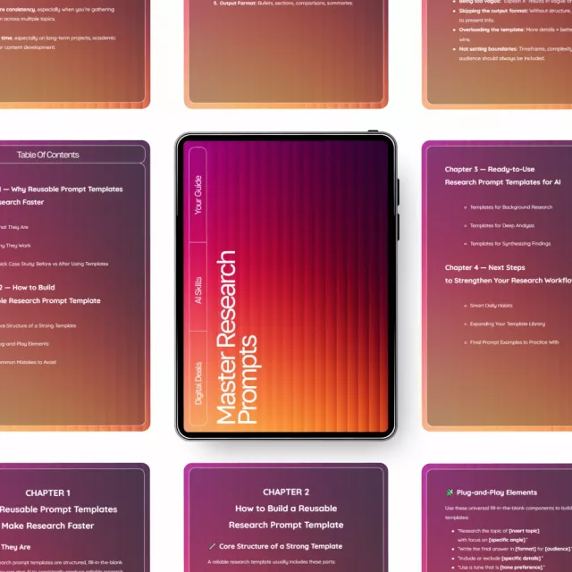 • Chapter 2 — How to Build a Reusable Research Prompt Template: Core structure, plug-and-play elements, and common mistakes to avoid.