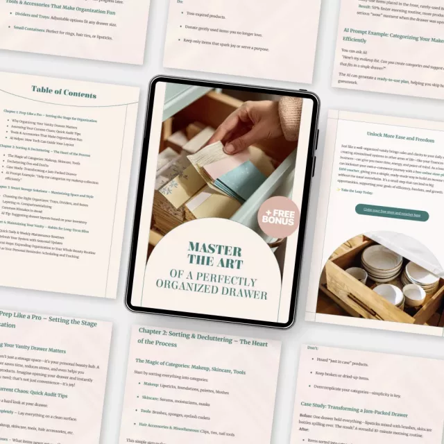 It’s time to reclaim your vanity and rediscover the joy in your daily beauty ritual. Download Master the Art of a Perfectly Organized Drawer now and start transforming your space—one drawer at a time.