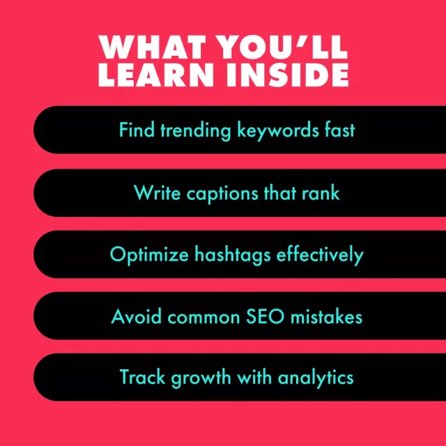 Unlike generic TikTok growth eBooks, this guide is laser-focused on TikTok SEO. It’s not about random hacks or trends—it’s about sustainable growth through strategic keyword placement, captions, hashtags, and analytics. You’ll walk away with a repeatable process to keep your content visible, no matter what’s trending.