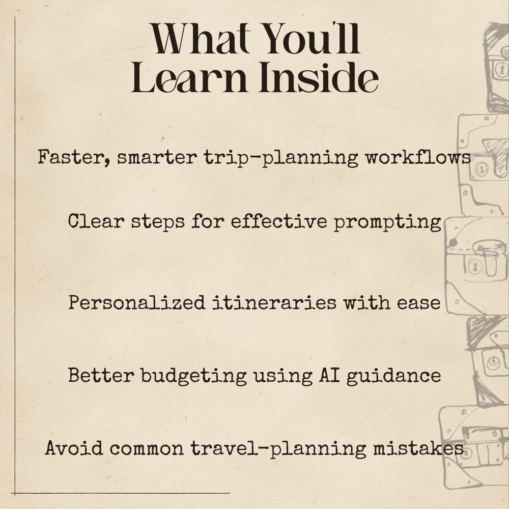 Unlike generic AI tutorials, this guide focuses specifically on travel planning and walks you through real examples, step-by-step prompt structures, and practical applications you can use immediately. Every chapter is designed to help you master prompt engineering for travel planning ai in a simple, human-friendly way.