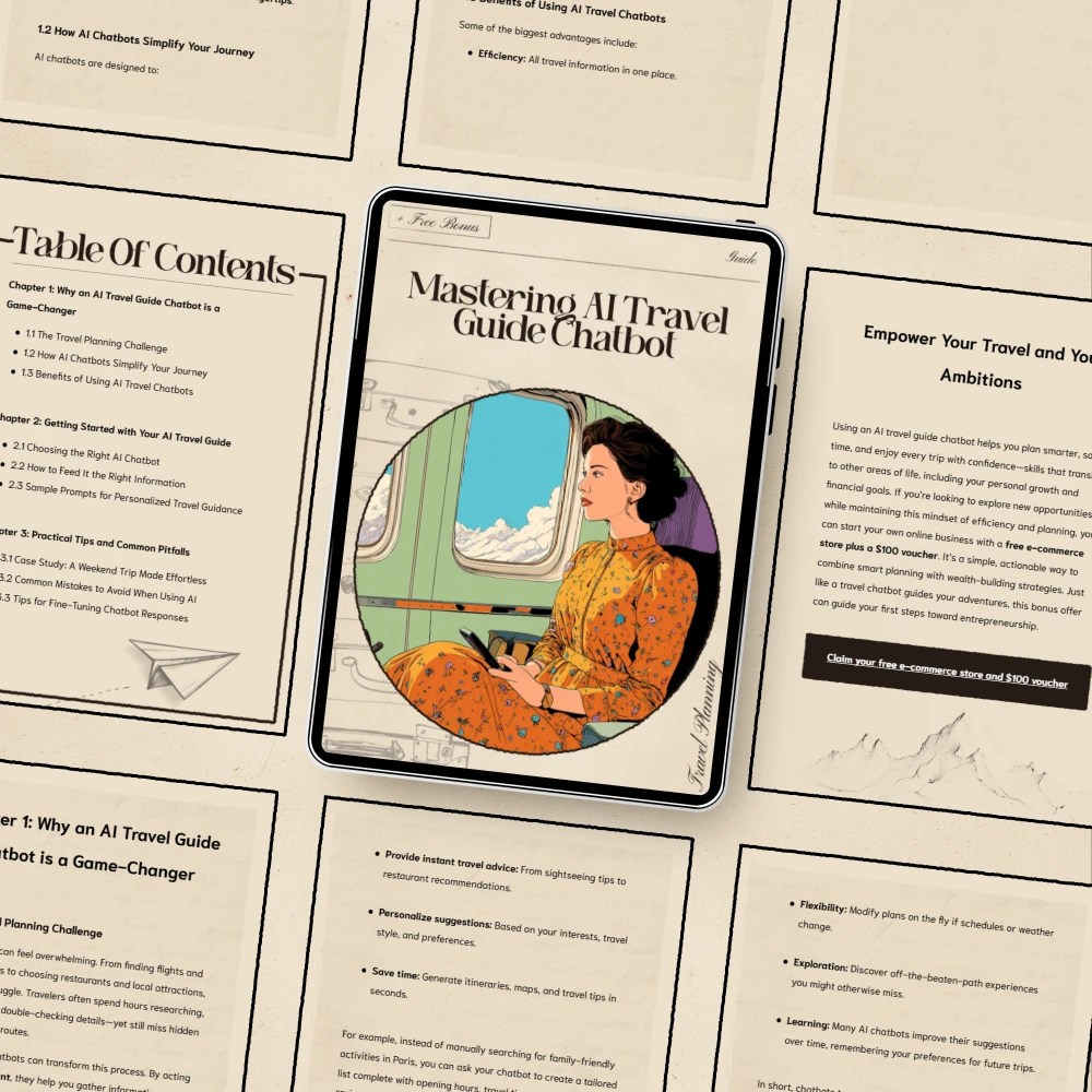 Discover a smarter, smoother way to plan every journey with Mastering AI Travel Guide Chatbot—your go-to digital guide for unlocking the full potential of an ai travel guide chatbot. Whether you’re dreaming up your next getaway or fine-tuning the final details, this guide shows you exactly how to use AI to simplify, personalize, and elevate your travel experience. Easy to follow and packed with real examples, it’s the ultimate resource for travelers who want modern solutions without the overwhelm.