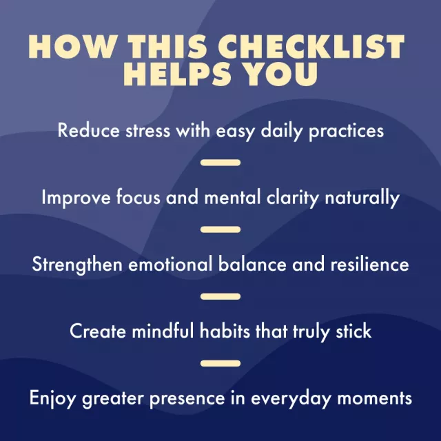 This checklist is ideal for busy professionals, students, parents, or anyone seeking more balance and calm in their life. If you want a simple way to bring mindfulness into your daily routine without feeling overwhelmed, this resource is for you.