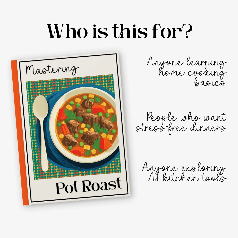 Unlike ordinary cookbooks, this guide blends classic cooking knowledge with modern technology. You’re not just learning a pot roast recipe—you’re learning how to personalize, optimize, and visualize it using AI tools. The rescue case study adds real-world problem solving most guides never offer.