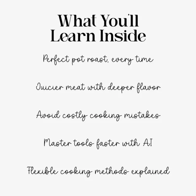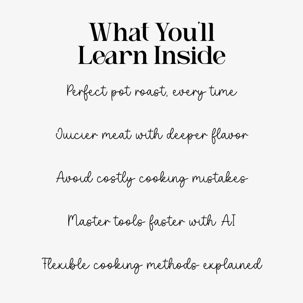 This guide includes clear instructions, practical cooking charts, and modern tools using AI to help you perfect your pot roast recipe. You’ll get ingredient breakdowns, timing guides, troubleshooting solutions, and innovative techniques that go beyond standard cooking advice.