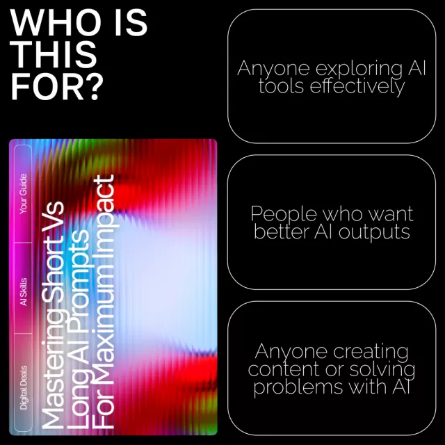 This is not just another AI guide. Mastering Short vs Long AI Prompts for Maximum Impact combines an engaging eBook, a clear checklist, and practical case studies, giving you both the knowledge and tools to transform how you interact with AI. Unlike other generic guides, this resource focuses specifically on prompt length strategies, making it a must-have for anyone serious about maximizing AI efficiency.