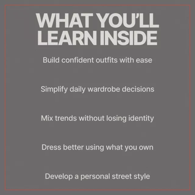 This digital guide walks you step by step through the mindset, wardrobe building, and styling techniques that define modern street style.