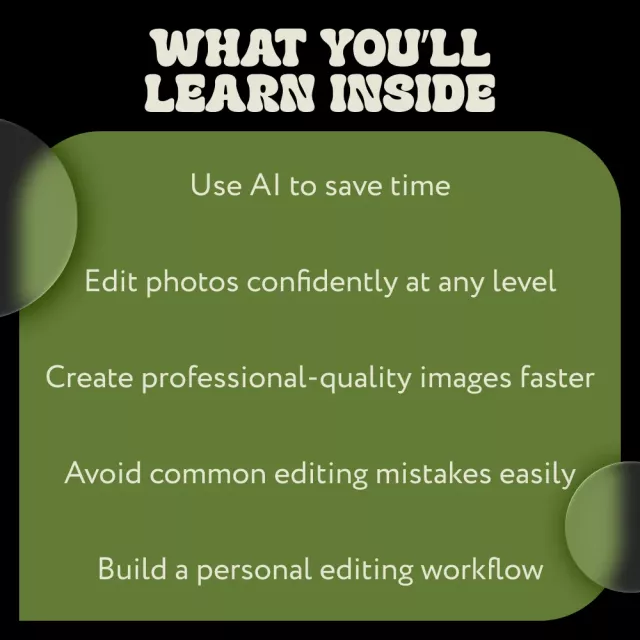 Unlike generic tutorials, this eBook combines foundational skills, advanced techniques, and modern AI workflows in one cohesive system. It focuses not just on tools, but on decision-making, efficiency, and developing your own editing style—making it a long-term resource you can return to as your skills grow.