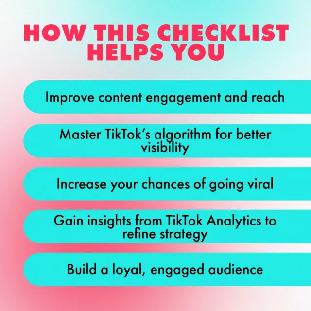 This checklist is perfect for TikTok creators, marketers, influencers, or anyone eager to grow their TikTok presence. It’s designed for both beginners and seasoned content creators who want to optimize their strategy. If you’ve been struggling to crack the code behind the TikTok algorithm, this guide gives you a practical and straightforward approach to improve your content’s performance. Whether you’re just getting started or looking for ways to improve your current content strategy, you’ll find everything you need to succeed.