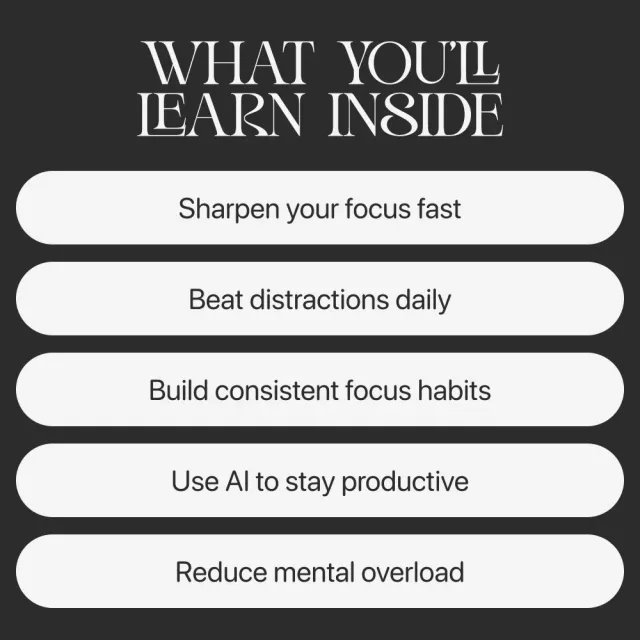 Unlike generic productivity guides, this resource combines neuroscience, behavioral psychology, and real-life case studies with modern AI solutions. It doesn’t just tell you how to improve focus — it shows you why your brain struggles in today’s digital world and gives you step-by-step systems to rebuild your attention from the ground up. Everything is explained in simple, clear language with actionable tools you can actually use.