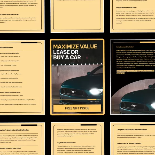 Choosing whether to lease or buy a car can feel overwhelming, especially when the financial and lifestyle implications aren’t always clear. Maximize Value: Lease or Buy a Car is a practical, easy-to-follow digital guide designed to help you confidently decide which option truly fits your needs. Instead of confusing jargon or generic advice, this guide breaks everything down in simple language, using real-world examples and smart tools so you can make a decision you won’t regret.