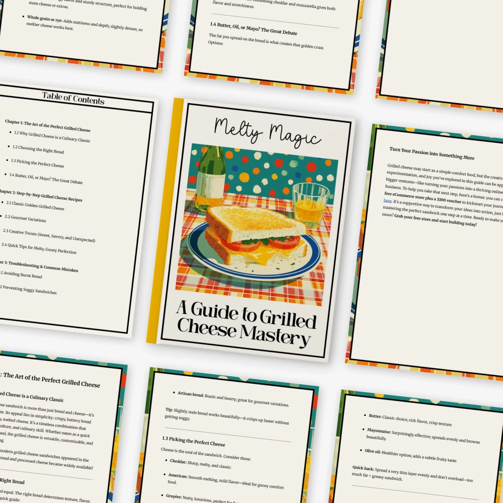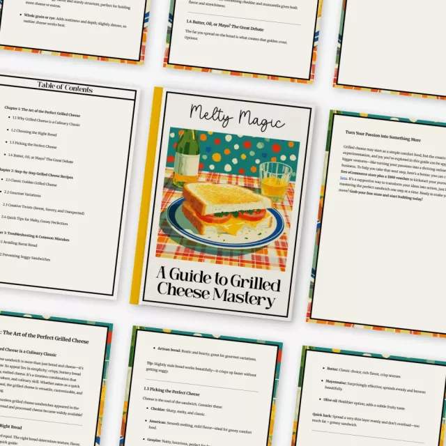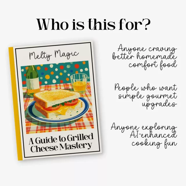 Unlike generic recipe PDFs, Melty Magic blends classic cooking techniques with modern creativity. It goes beyond basic instructions and delivers expert insights, flavor science, and even AI-enhanced experimentation tips to help you master not just one grilled cheese sandwich recipe—but endless variations.