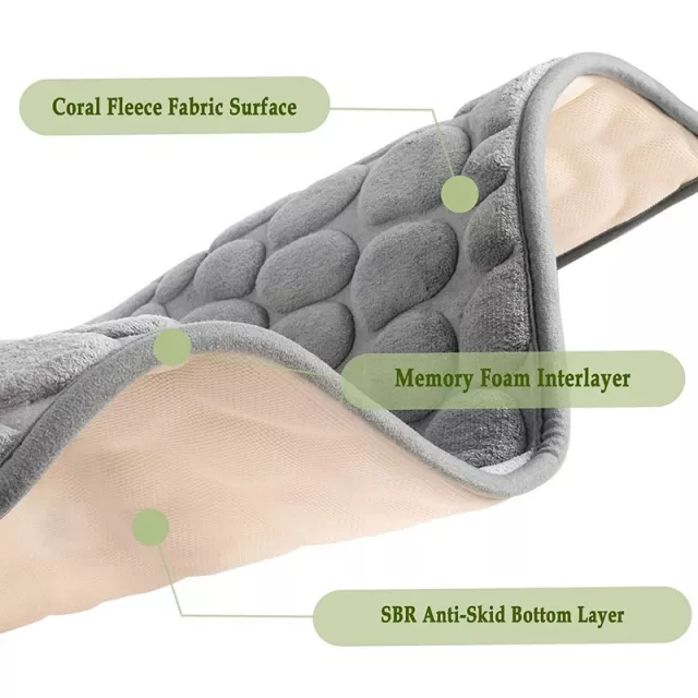• Soft Memory Foam: The memory foam layer is designed to trap and absorb excess water quickly, keeping your bathroom floors dry and free from puddles.