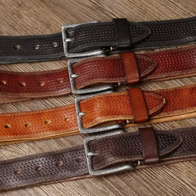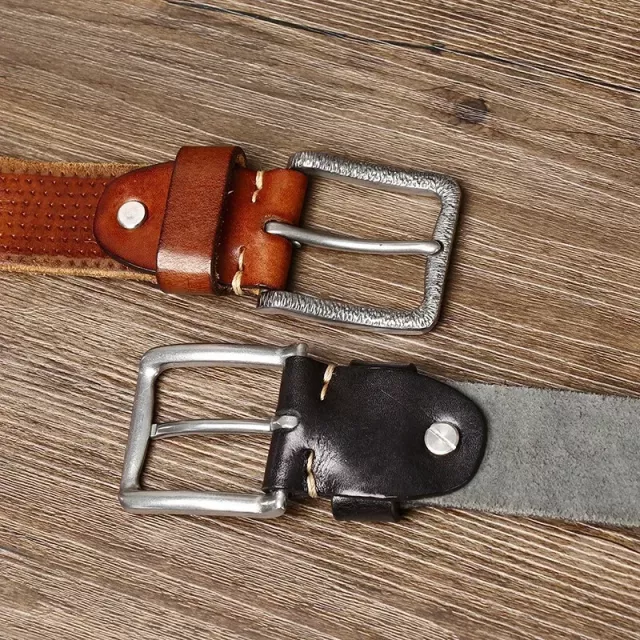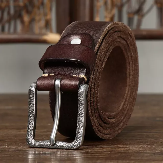 Men’s 3.8cm Genuine Cowhide Leather Belt with Stainless Steel Buckle – Vintage Style