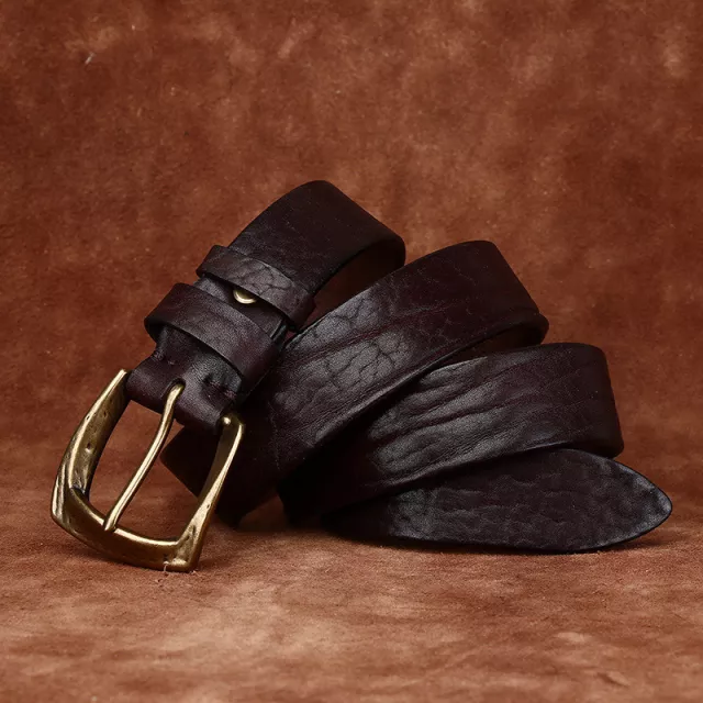 Men’s 3.8cm Genuine Leather Belt with Vintage Copper Buckle – Casual & Durable