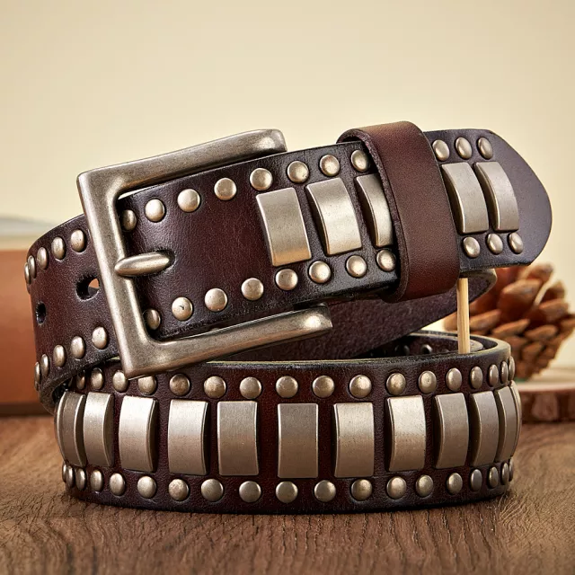 Unlike ordinary belts, this one combines genuine leather toughness with eye-catching rivet details, creating a unique accessory that stands out. It doesn’t just hold your jeans—it elevates your entire look. Built for men who appreciate both style and function, it’s more than a belt; it’s a statement of personality.