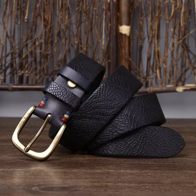 Upgrade your everyday look with this genuine leather serpentine grain belt, designed to bring timeless elegance and durability to your wardrobe. Crafted from high-quality cowhide leather, this belt features a unique snakeskin-inspired texture that makes it stand out while remaining versatile enough for daily wear. The solid copper pin buckle adds a refined finish, blending strength with sophisticated style.