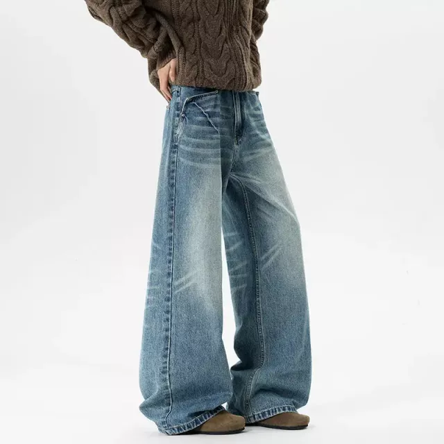 Step up your everyday wardrobe with these Korean-style straight leg denim jeans, designed for men who appreciate effortless fashion and comfort. The light wash and unique moustache effect bring character to your outfit without trying too hard.