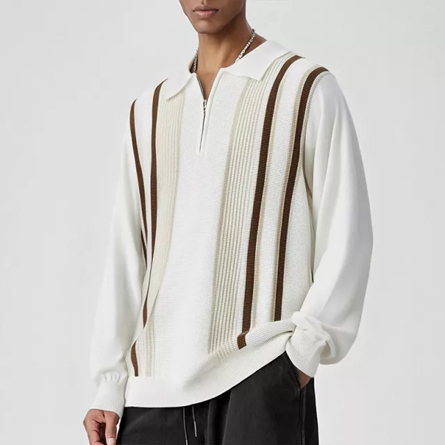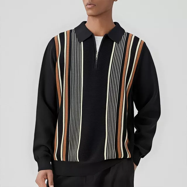 Upgrade your fall wardrobe with this men’s knitted polo, designed for those who want to look sharp while staying comfortable. Crafted with a refined patchwork design and breathable knit fabric, this long-sleeve polo blends business style with relaxed casual appeal. With its contrast-color pattern and slim, flattering fit, it’s the perfect mix of smart and stylish.