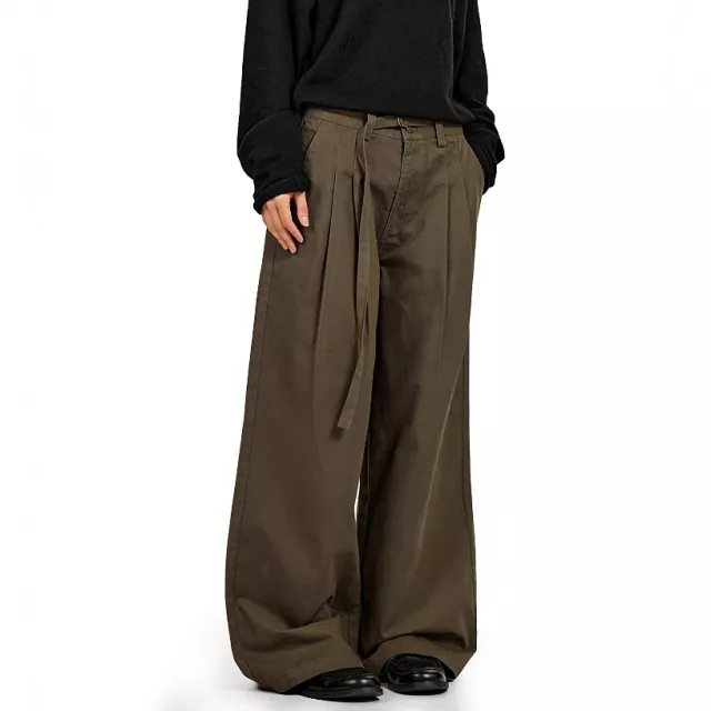 The unique character of these pants comes from their perfect blend of elegant design and relaxed wearability. The standout feature is the sharp pleated design that adds depth and dimension to the silhouette, creating a look that’s both structured and effortless. Paired with the modern wide-leg cut, these trousers offer a fashion-forward alternative to basic pants. The unique ‘Coffee green’ color provides a versatile, earthy tone that’s both distinctive and easy to pair with your existing wardrobe, setting you apart from the crowd.