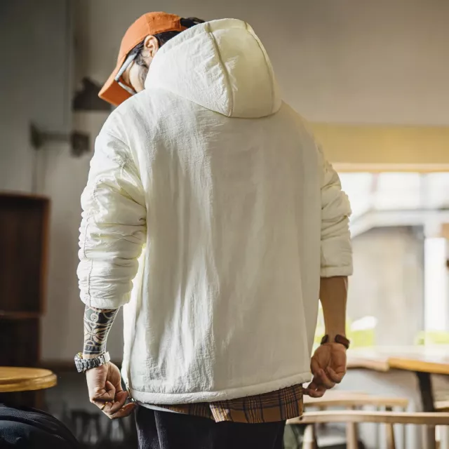 This winter hoodie jacket is made for men who want comfort, warmth, and everyday style without the bulk. Designed with a soft plush lining and fluffy air-fiber fill, it traps heat while staying lightweight and easy to wear. The outer layer is crafted from water-resistant fabric, helping you stay dry during light rain or snowy days.