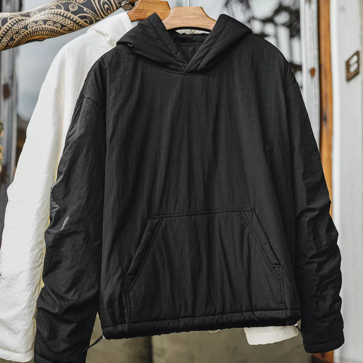 The relaxed drop-shoulder design and gathered sleeves give it a modern streetwear look, while still feeling comfortable for daily movement. Whether you’re heading to work, running errands, or enjoying outdoor walks, this hoodie keeps you warm and sharp all day long.