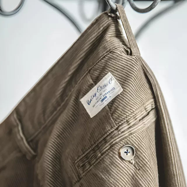 The fabric uses 11-wale corduroy, meaning there are 11 distinct ridges across the width of a coin. This gives the material a fuller texture, improved softness, and better resistance to friction and wear. The front pleats add structure and give extra room around the waist and thighs, creating a flattering silhouette with excellent comfort.