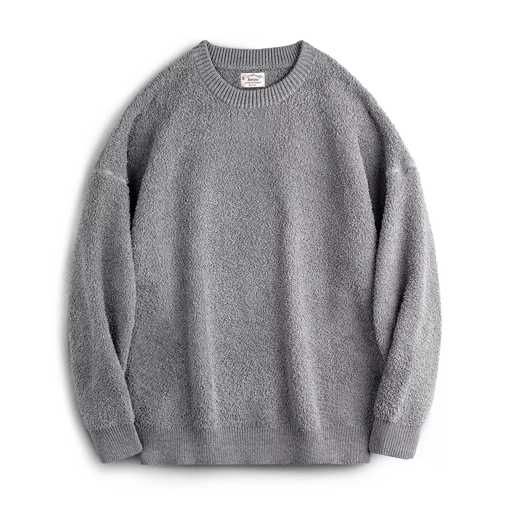 This sweater is built for comfort and easy styling. It has a classic round neckline, full-length sleeves, and a ribbed hem that helps maintain its shape. The fabric is flat knitted for a smooth finish and a clean, retro look. The solid grey color makes it easy to match with jeans, joggers, or layered over a shirt.