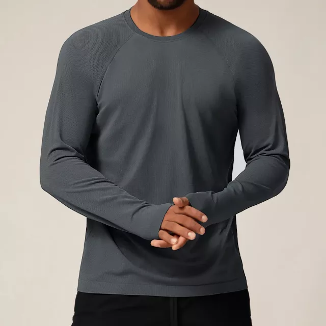 Men’s Seamless Compression Long Sleeve Workout Shirt – Quick Dry & Breathable