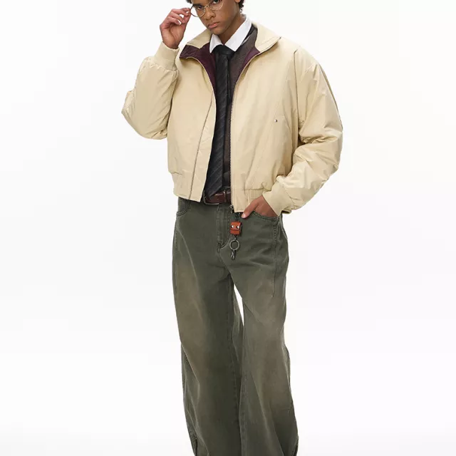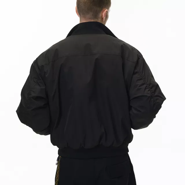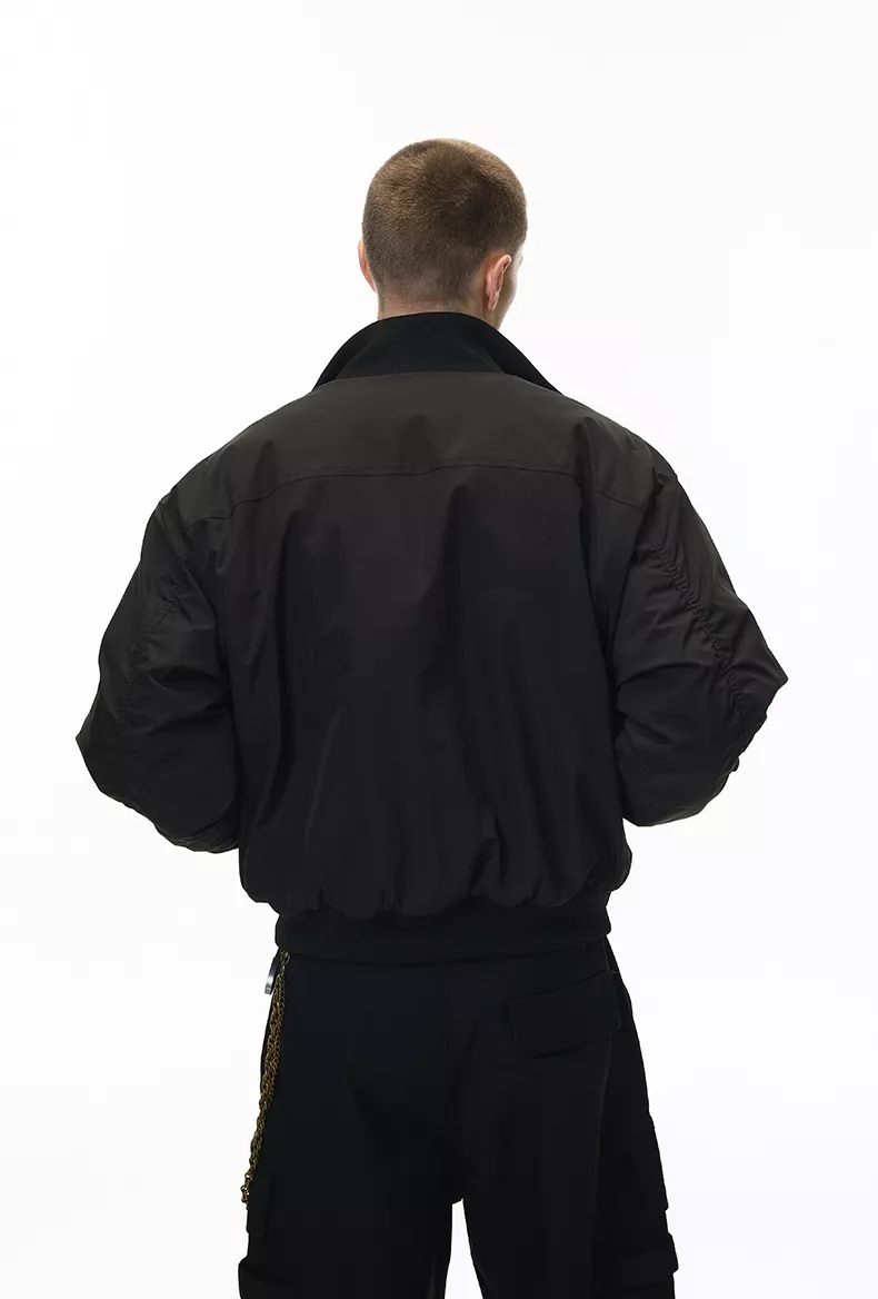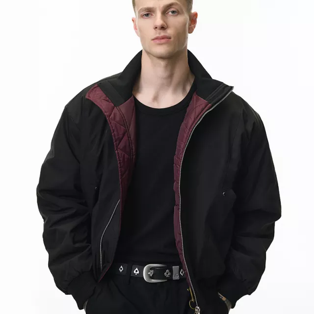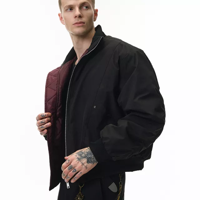 What makes this bomber jacket special is its careful blend of streetwear influence and refined simplicity. Its deconstructed cleanfit design gives it a modern edge, while the padded construction ensures warmth in cold-weather settings. With no unnecessary details or decorations, the jacket maintains a sleek, sophisticated style that works effortlessly across multiple looks.
