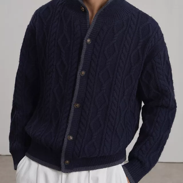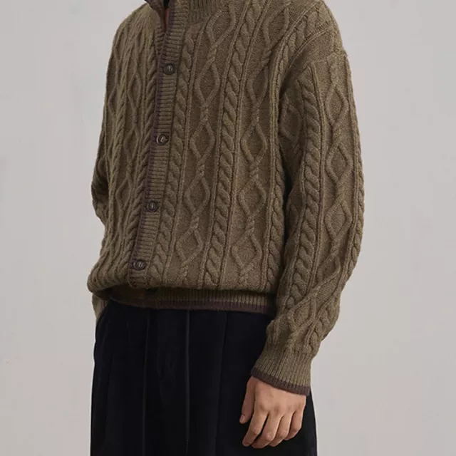This men’s stand collar knit sweater jacket blends vintage charm with modern comfort. Designed for daily wear in cold weather, it gives you the polished look of a coat with the soft feel of a cardigan. Whether you’re heading to work, going out with friends, or just running errands, this piece adds instant style without feeling heavy or bulky. The clean, solid color and twist knit texture make it easy to pair with jeans, chinos, or layered over a shirt.