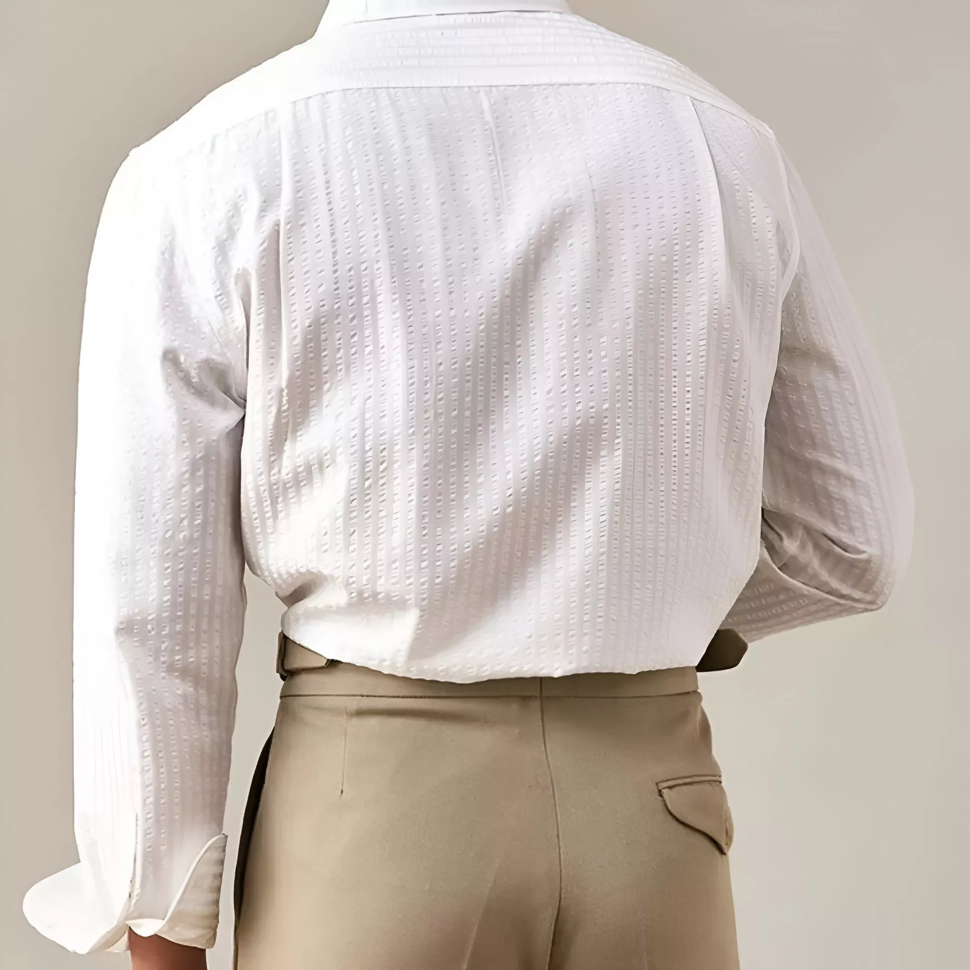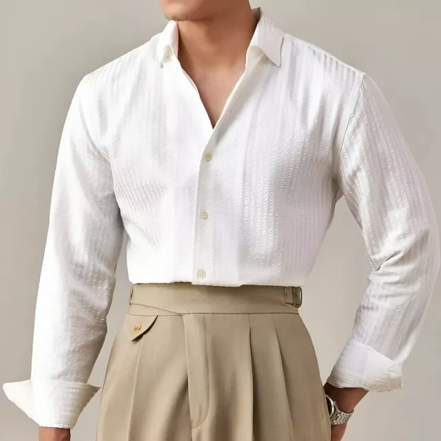 Step into the new season with confidence in this Stripe Dress Shirt, designed for men who appreciate a clean, polished look without sacrificing comfort. Made from a breathable cotton blend, this long-sleeve striped shirt brings together the best of casual charm and refined style. Whether you’re heading to a relaxed day out, a casual office setting, or an evening gathering, this shirt fits effortlessly into every moment of your day.