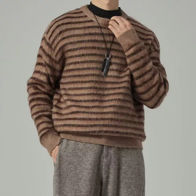 This sweater stands out because of its soft knitted fleece texture and balanced design. The stripes add personality without being too bold, making it perfect for men who like subtle fashion. The knit construction helps trap warmth while staying breathable, so you stay comfortable without overheating. It’s not bulky, but still provides enough insulation for winter wear.