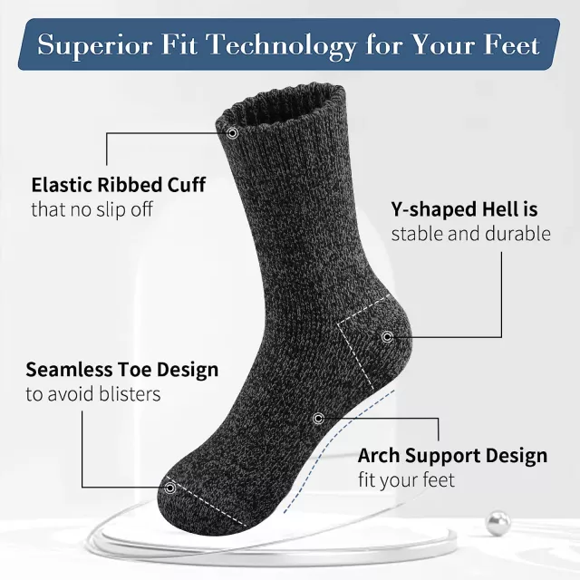 Stop choosing between warm and comfortable. With these thermal wool hiking socks, you get both. Whether you’re hitting a trail, heading to work, or relaxing at home, your feet will stay protected from the cold and wrapped in comfort.