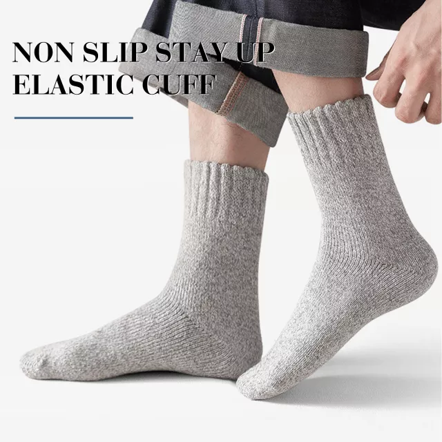 If cold feet slow you down, it’s time for an upgrade. These men’s thermal wool socks are designed to keep you warm, dry, and comfortable through long winter days and outdoor adventures. Made with a premium blend of 15% wool, 55% cotton, 30% polyester, and spandex, they deliver the perfect balance of warmth, softness, and stretch.
