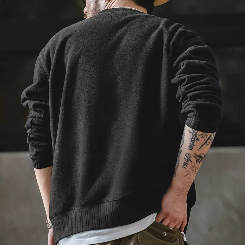 Its simple design never goes out of style. The solid black color pairs with almost anything, making it a reliable choice for repeated wear. No zippers, no hood, no clutter — just a clean, classic design made for comfort and everyday use.