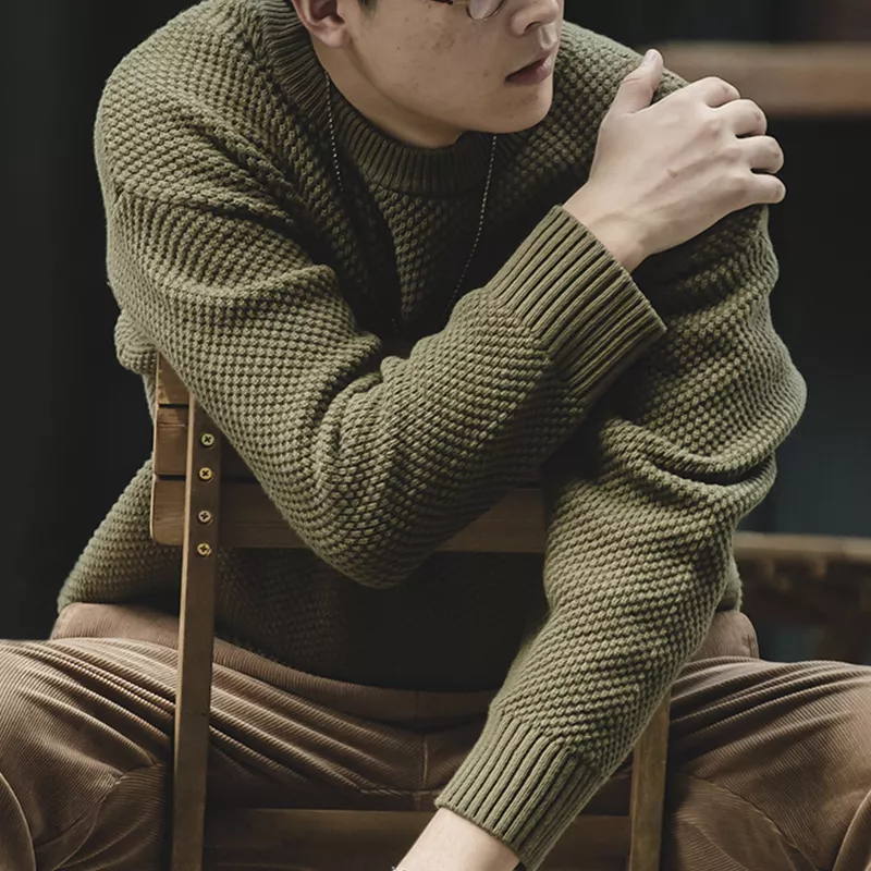 This sweater is best used during autumn and winter. Wear it on its own during mild weather or layer it over a shirt or under a coat when temperatures drop. It’s ideal for casual outings, daily wear, coffee meetups, weekend walks, and relaxed work environments. The vintage look pairs well with jeans, work pants, or chinos for an effortless, laid-back style.