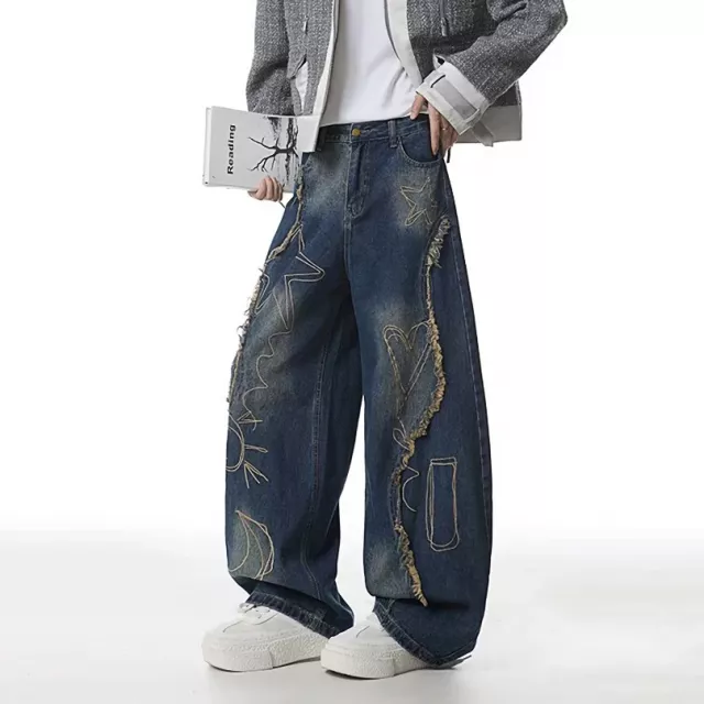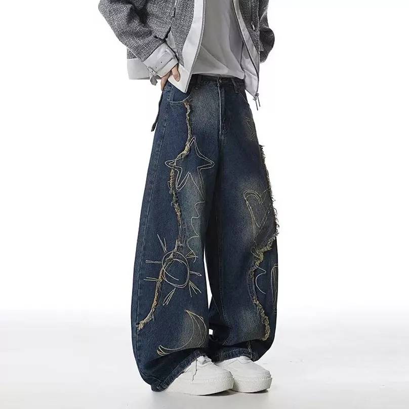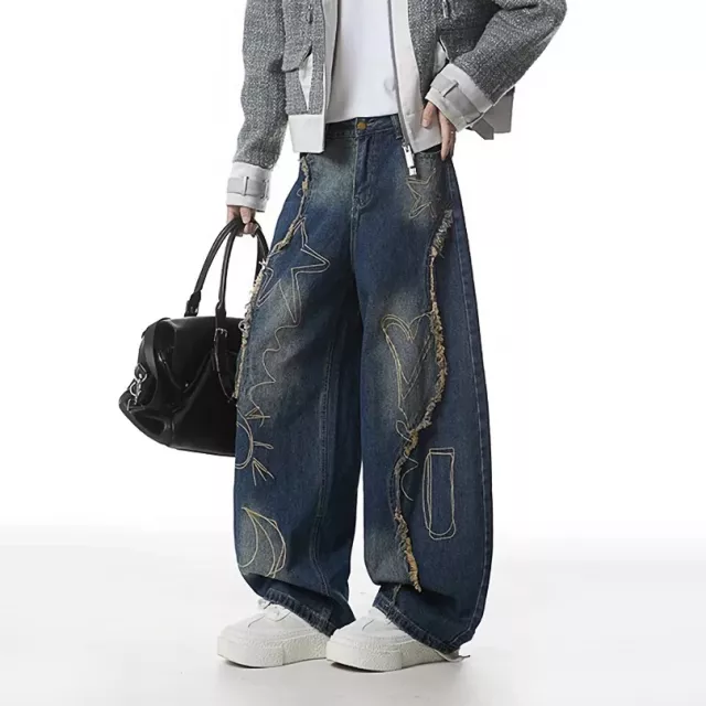 Upgrade your everyday look with these bold wide-leg patchwork jeans designed for comfort, attitude, and versatility. Inspired by American street fashion, they feature raw edge details, contrast panels, and a relaxed silhouette that stands out without trying too hard. The fabric blend of cotton and polyester gives you a soft feel with a slight stretch, so you stay comfortable from morning to night. These jeans are made for men who want to express style while keeping it effortless.