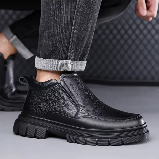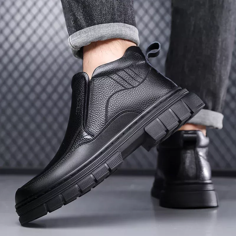 Step into cold weather with confidence. These men’s high-top Chelsea dress boots combine timeless formal style with cozy winter comfort, making them perfect for work, events, and everyday wear. Designed to sit just above the ankle, they give you extra warmth and support without feeling bulky or heavy. The clean, classic look pairs easily with jeans, chinos, or dress pants, so you stay sharp wherever you go.