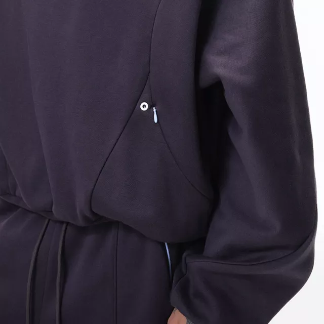 The hoodie is designed with a pull-on style and O-neck collar, offering a clean silhouette without zippers or bulky closures. Its modern tech-fleece look brings a premium feel while maintaining a casual, relaxed style.