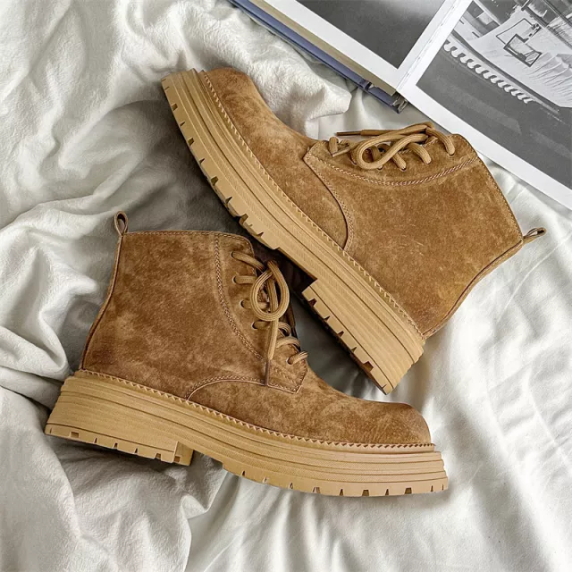 These boots stand out with their combination of high-quality materials and classic design. Handmade craftsmanship ensures attention to detail in every stitch, creating a sophisticated and long-lasting pair of boots. The platform and low heel add subtle height without sacrificing comfort, while the cow suede upper gives a luxurious, textured look that naturally complements autumn and winter outfits. Unlike other boots, these are lightweight yet robust, making them perfect for both city adventures and casual weekends.