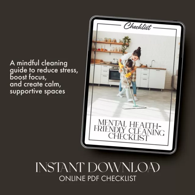 Transform your home and mind with the Mental Health-Friendly Cleaning Checklist — a thoughtfully designed digital download that helps you create a calm, focused, and anxiety-free environment. This printable guide is more than just a cleaning list — it’s a mindful system for building healthier habits, reducing overwhelm, and reclaiming peace in your personal space. Whether you struggle with motivation, anxiety, or executive function, this guide shows you the best way to plan cleaning for mental health — one intentional step at a time.