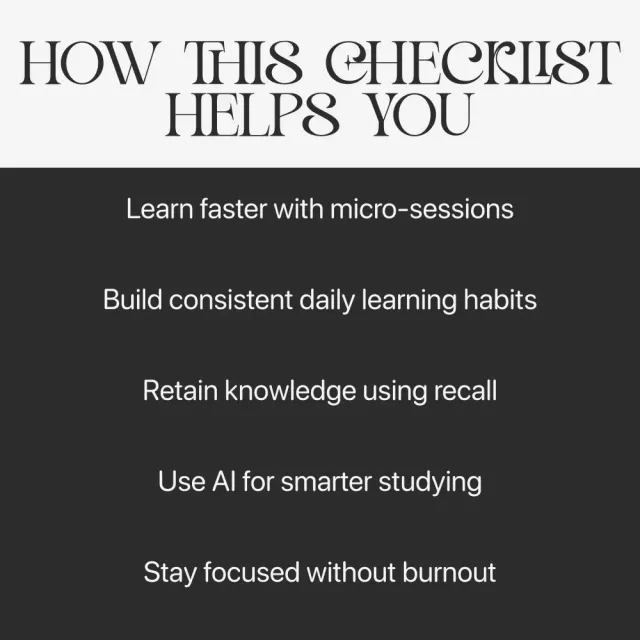 Unlike generic learning planners or long eBooks, this checklist is designed for speed and clarity. Every step is short, practical, and easy to implement immediately. You don’t need hours of free time or deep academic knowledge — just a few minutes a day. This resource uniquely combines neuroscience-based techniques, actionable structure, and AI-powered learning prompts into one simple tool. It cuts out the fluff and focuses only on what actually works for busy minds.