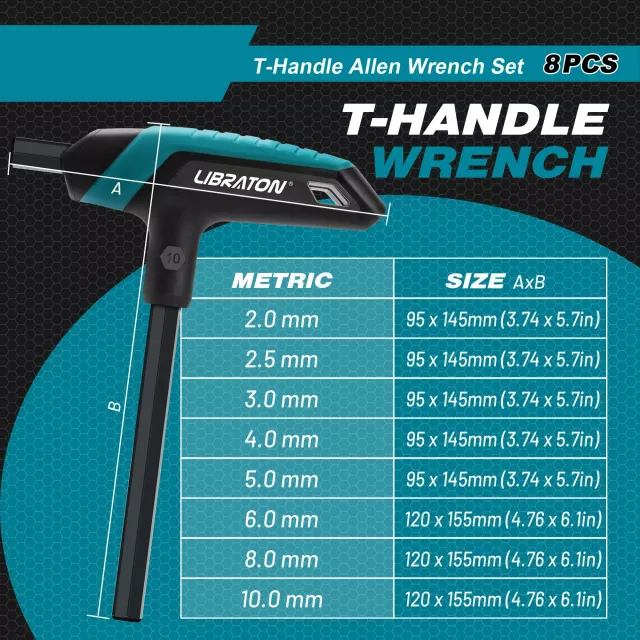 Take on any repair job with confidence using this versatile 8-piece T-Handle Hex Key Wrench Set. Designed with the most popular metric sizes ranging from 2mm to 10mm, this set is built to handle everything from simple home projects to tough automotive, motorcycle, and bicycle repairs. Whether you’re tightening bolts on furniture, tuning up your bike, or maintaining machinery, these wrenches are your go-to tools for precise and reliable performance.