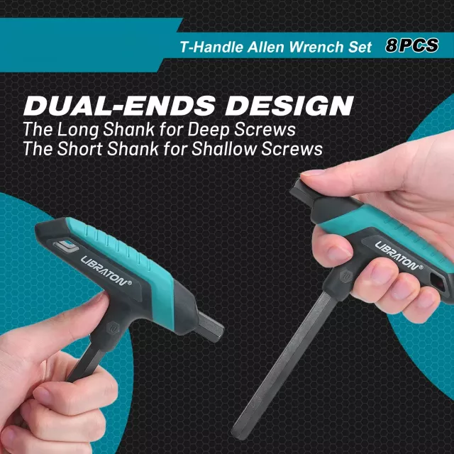 The ergonomically designed T-handle provides greater leverage and torque, letting you apply more force without straining your hands. Each handle is coated with a non-slip grip for comfort, so you can work longer and more effectively. With dual ends, the long shaft helps reach deep or hard-to-access screws, while the short end is perfect for quick, shallow adjustments.
