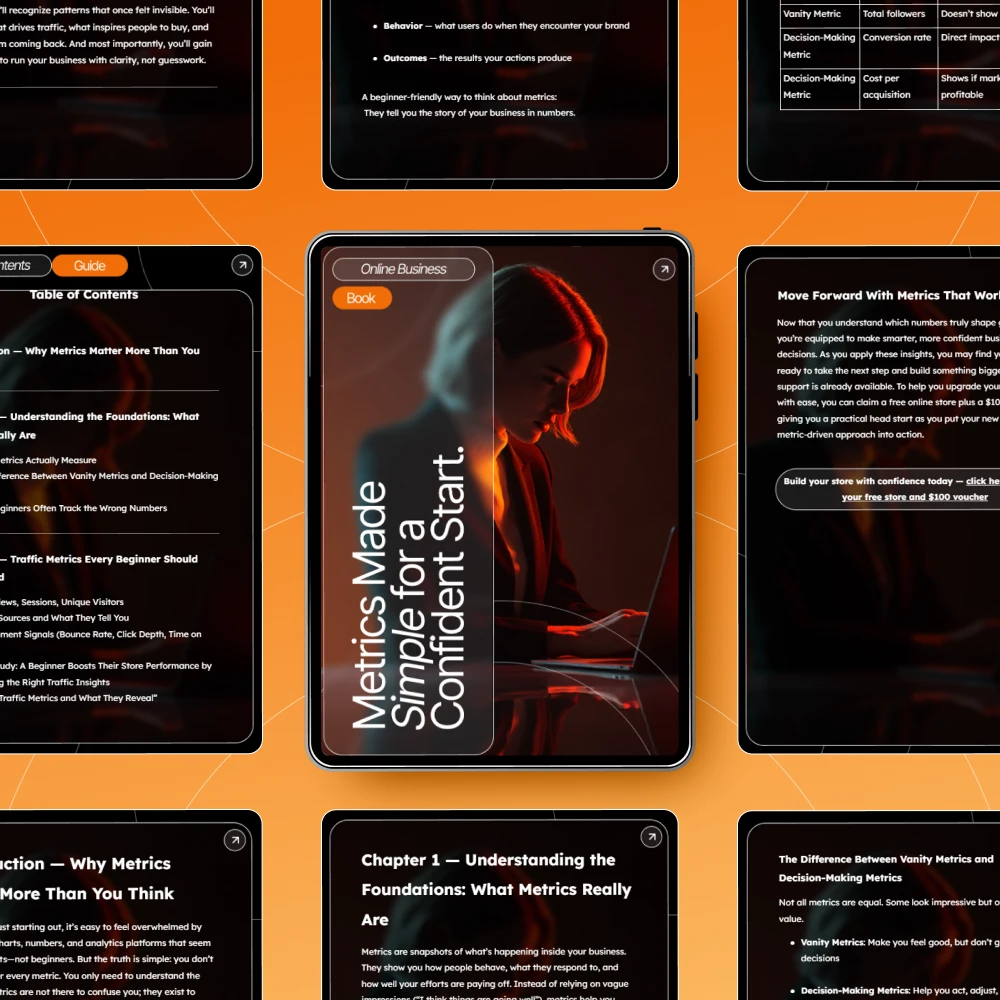 Unlock the power of data and set your business on the path to success with *Metrics Made Simple for a Confident Start*! This comprehensive eBook is your step-by-step guide to understanding the key metrics that matter for beginners. Whether you’re just starting your online store, launching a blog, or managing a new business, this guide will teach you how to track the numbers that truly drive growth.